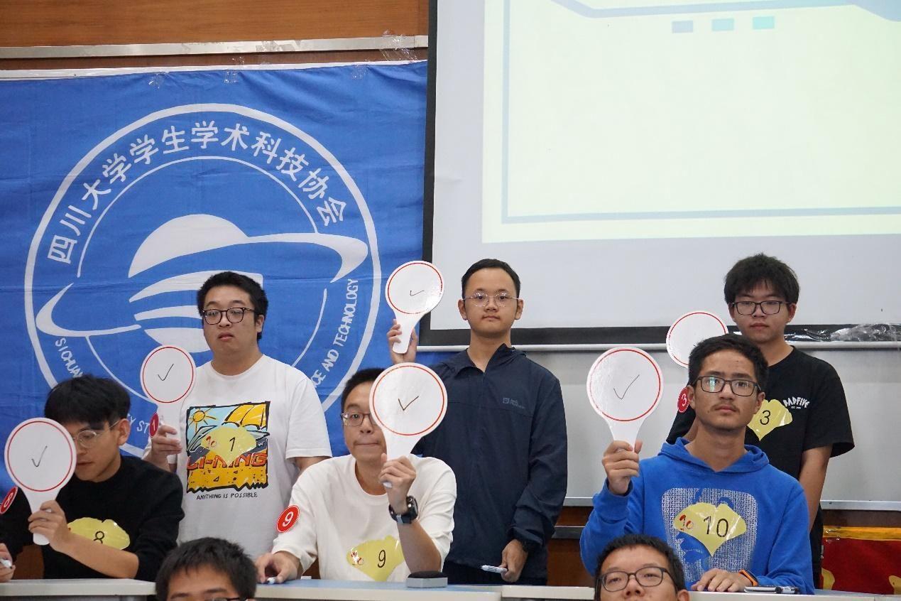 第二轮分组抢答赛,选手们聚精会神,心无旁骛,将所学知识与竞赛技巧巧妙结合,充分展现新一代大学生丰富的知识储备与从容自信的心理素质。经过一轮正式比赛和一轮加时赛,6名选手成功晋级。