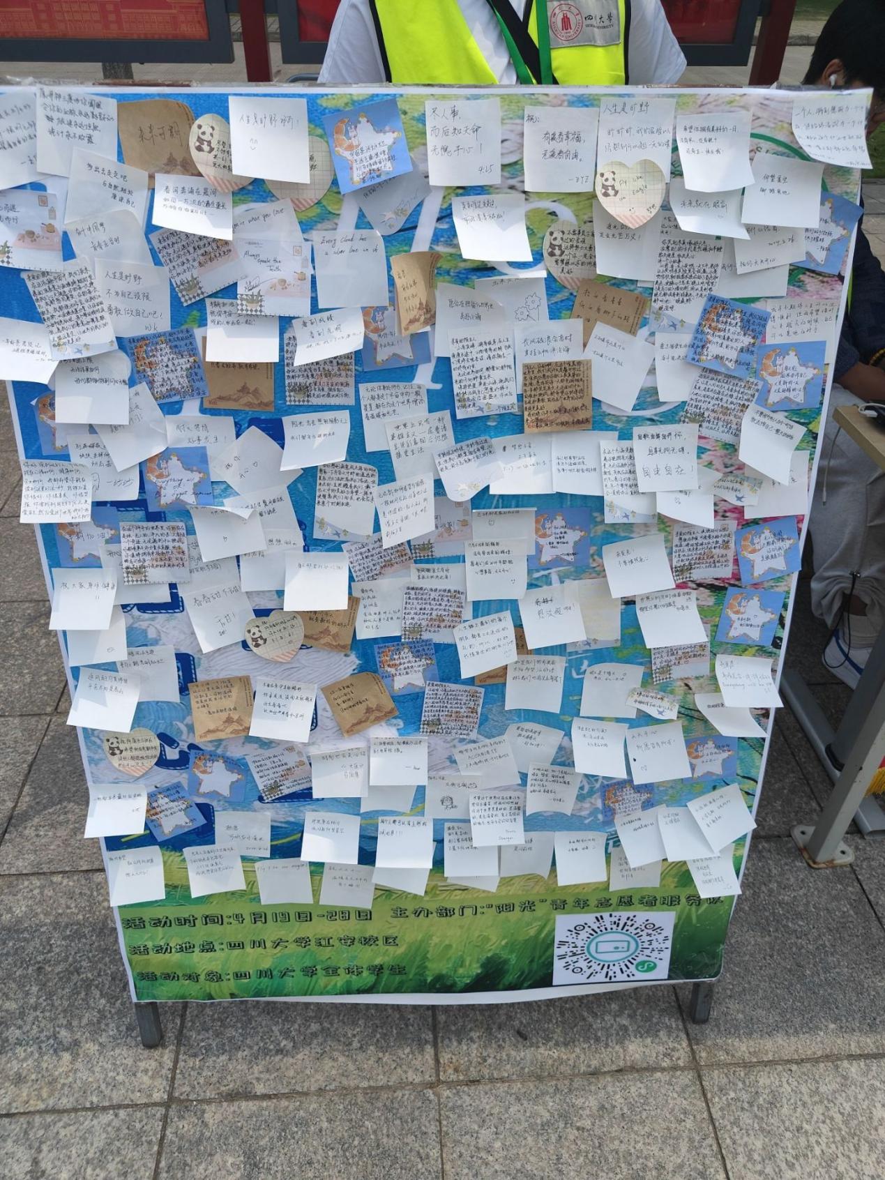 4月25日进行线下活动,早上8:00志愿者们携带物资前往活动现场进行布置,志愿者积极邀请同学们参与活动,在便利贴上留下鼓励人心的话并张贴在活动展板。参与的同学们认真写下他们想说的话,或是对自己的鼓励,亦或是对陌生人的暖言,在这个四月里留下了独属他们的温暖。随后同学们参与了关于心理知识的问答挑战,参与者与志愿者在活动中自然而然地收获了更加专业的心理知识,能够更好的将知识应用于日常生活之中。