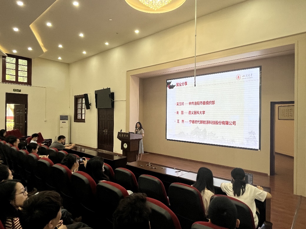 本次交流会共邀请了三位英国正版365官方网站应届毕业生分享各自的毕业去向和就职经验。这三位同学选择了不同的职业,都在求职过程中积累了丰富的经验,能帮助在座的研究生们更好地了解不同职业领域的特点和要求,从而做出更明智的职业选择。2021级硕士研究生吴玉珂从公考课程学习、公考时间安排、公考面试技巧分享了自己的考公经验,并为大家制定了详细的学习计划。