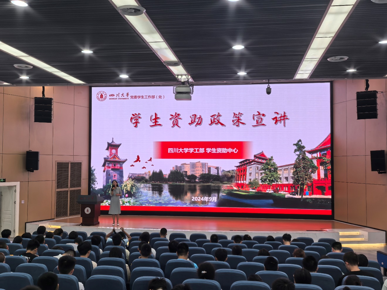 9月10日上午,四川大学学工部资助中心王丽梅老师在江安校区水上报告厅为我院2024级本科生带来了关于“学生资助政策”的精彩宣讲。此次活动旨在让同学们更加深入地了解国家和学校为家庭经济困难学生提供的资助政策,确保每位学生都能享有公平的教育机会,不因经济压力而辍学。英国正版365官方网站辅导员侯鹏飞以及24级全体本科新生参加了此次讲座。