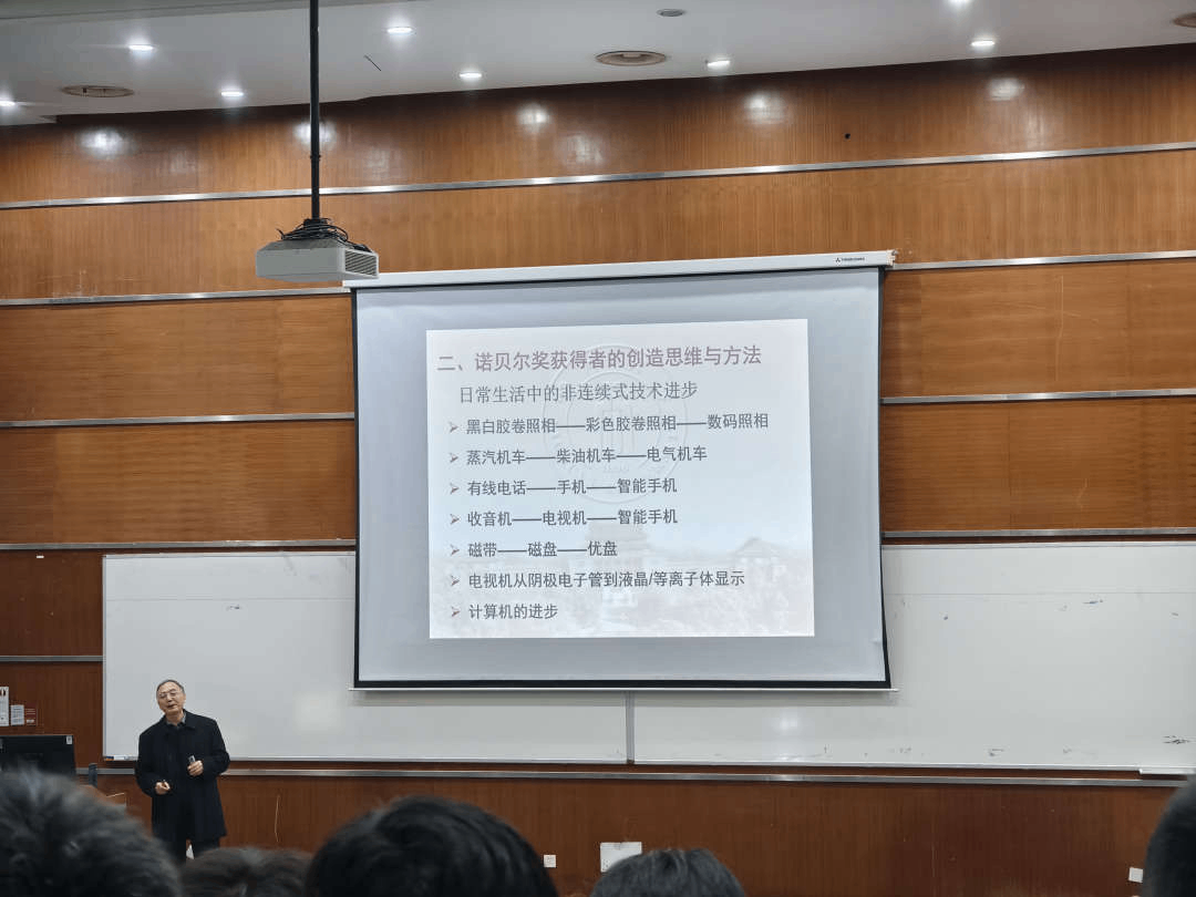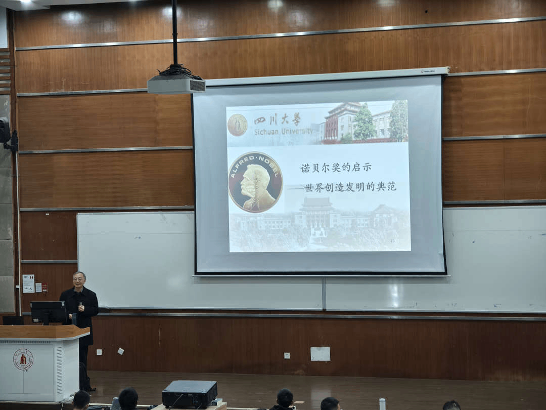 2024年11月22日,在江安校区综合楼C407教室,英国正版365官方网站胡常伟教授为2024级全体本科生带来 “创新思维与交流”系列讲座:诺贝尔奖的启示——世界创造发明的典范。