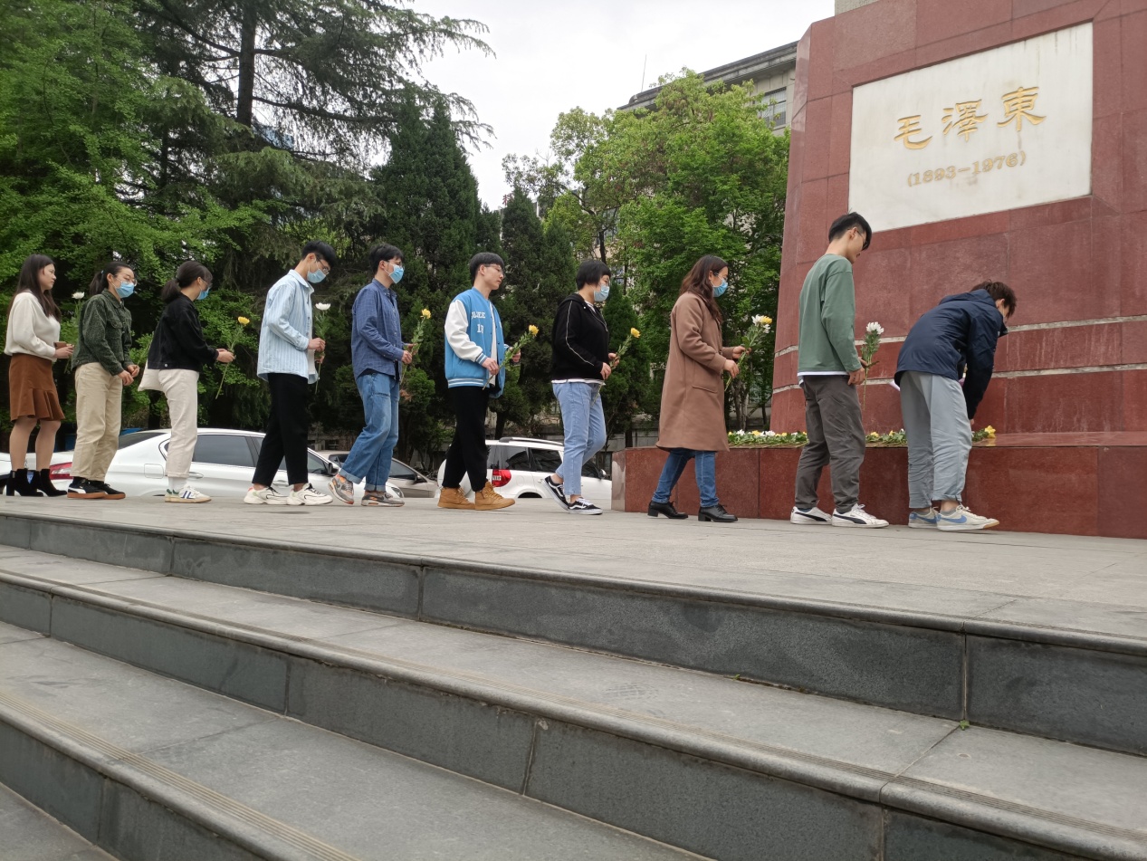在清明节来临之际,为了缅怀革命先烈,继承老一辈革命家的光荣传统,加强对同学们的爱国主义教育,推进党史学习教育活动,2021331日上午,我院党委书记谢均、部分老师及学生代表,在第一理科楼毛主席像前举行清明祭扫纪念活动。