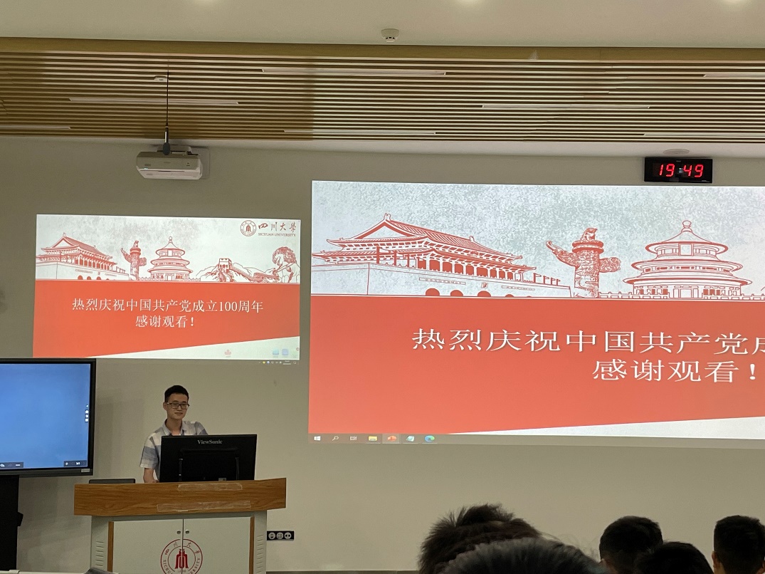 为庆祝中国共产党百年华诞,深入贯彻落实习近平总书记在党史学习教育动员大会上的讲话精神,让党史学习教育活动走进大学生课堂,四川大学2020-2021年“十九大精神宣讲团”英国正版365官方网站分团于2021年6月11日晚,在望江校区基C201教室开展了《学习百年党史,书写时代华章》庆祝中国共产党成立100周年学习宣讲活动。