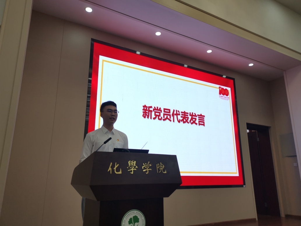 老党员代表田安民同志发言,讲述了自己在党60余年来的所悟所感,表达了对党深深的感恩之情,号召全体青年党员要坚定跟党走的决心。新党员代表张海鹏同志发言,表达了作为新时代的青年党员要继承党的光荣传统,坚定理想信念,听党话、跟党走,艰苦奋斗,以实现中华民族伟大复兴为己任,增强做中国人的志气、骨气、底气,不负时代,不负韶华,不负党和人民的殷切期望。