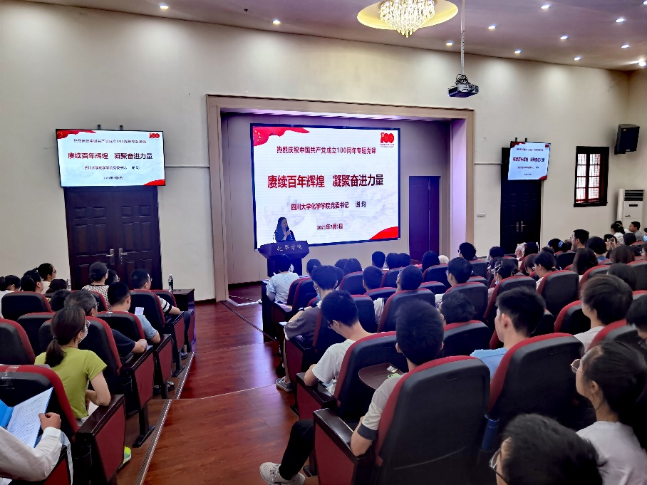 谢均同志上了题为《赓续百年辉煌,凝聚奋进力量》的专题党课,阐述了中国共产党取得的百年辉煌成就、党史学习教育的重大意义,介绍了英国正版365官方网站发展过程中取得的成绩和发展规划,展现了在中国共产党的领导下英国正版365官方网站的发展历程和光辉前景,表达了川大化学人要凝聚奋进力量,以实际行动践行初心使命,为党和国家做出更大贡献的信心和决心。
