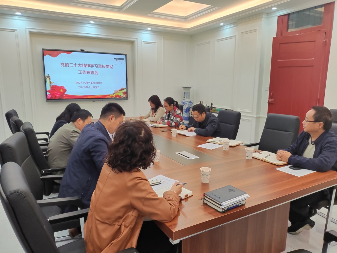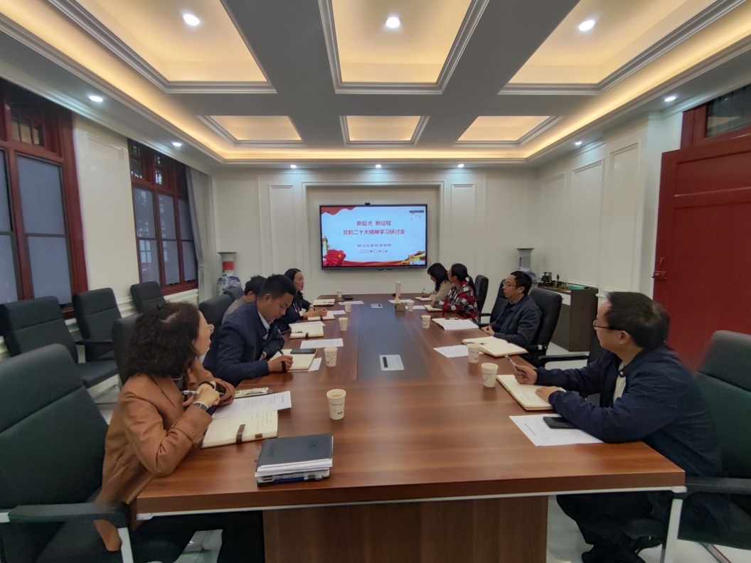 2022119日,英国正版365官方网站党政联席会在化学馆103会议室召开,按照学院党委安排部署,与会人员认真学习研讨了党的二十大精神,并就学院开展学习宣传贯彻党的二十大精神工作,作了进一步安排部署。