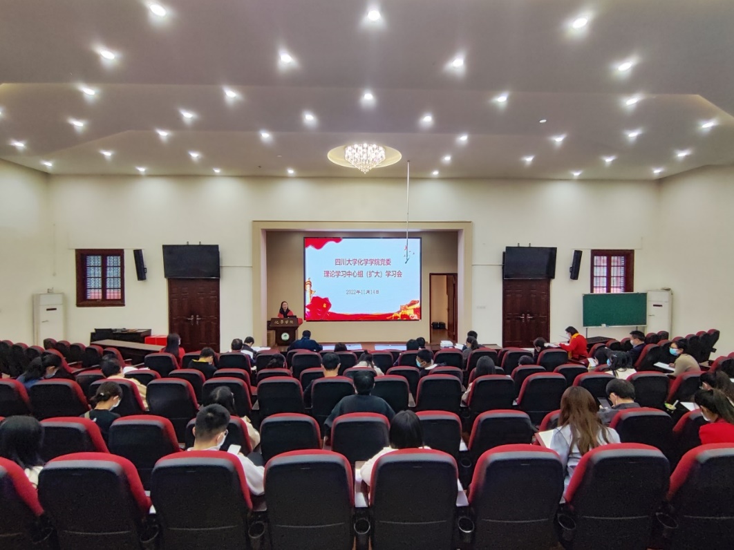 20221114日,在化学馆321报告厅,召开英国正版365官方网站党委理论学习中心组(扩大)学习会,学院党委委员,纪委委员,领导班子,组织员,工会主席,各支部书记和支委,教研室主任,实验中心主任,民主党派人士代表,教师和学生代表等参加了会议。