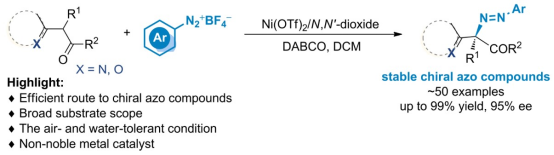 Wang, Y.; Yihuo, A. Y.; Wang, L. F. Dong, S. X.*; Feng, X. M.* Catalytic Asymmetric Synthesis of Chiral Azo Compounds via Interrupted Japp–Klingemann Reaction with Aryldiazonium Salts, Sci. China Chem. 2022, 65, 546.