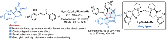 Luo, Q. L.; Mao, T.; Luo, Y.; Zhang, Y. X.; Wang, F.; Dong, S. X.*; Feng, X. M*. Enantioselective Synthesis of Spiro[cyclopentane-1,3’-oxindole] Scaffolds with Five Consecutive Stereocenters. Org. Lett. 2024, 26, 6402.