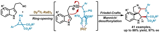Dong, P.; Li, Z. J.; Liu, X. H.; Dong, S. X.*; Feng, X. M.* Asymmetric Synthesis of Polycyclic Spiroindolines via the Dy-catalyzed Cascade Reaction of 3-(2-Isocyanoethyl)indoles with Aziridines, Org. Chem. Front. 2022, 9, 4591.