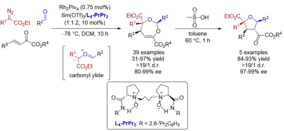 Xu, C. R.; Qiao, J. L.; Dong, S. X.*; Zhou, Y. Q.; Liu, X. H.; Feng, X. M.* Asymmetric Synthesis of Dihydro-1,3-Dioxepines by Rh(II)/Sm(III) Relay Catalytic Three-Component Tandem [4+3]-Cycloaddition, Chem. Sci. 2021, 12, 5458. This article is part of the themed collection: 2021 Chemical Science HOT Article Collection. Highlighted by Synfacts 2021, 17, 0518.