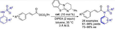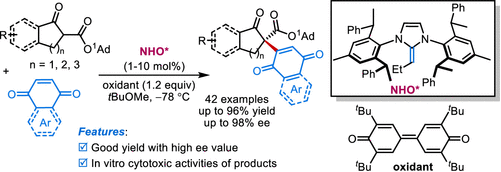 Wang, S. J.; Yang, J.; Zeng, H. H.; Zhou, Y. Q.; Wang, F.; Feng, X. M.; Dong, S. X.* Asymmetric Formal Coupling of β-Ketoesters with Quinones Promoted by a Chiral Bifunctional N-Heterocyclic Olefin, Org. Lett. 2023, 25, 7247.