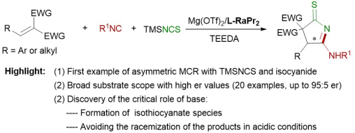 Xiong, Q.; Luo, Q. L.; Zhang, T. H.; Dong, S. X.*; Liu, X. H.; Feng, X. M.* Catalytic Asymmetric Multicomponent Reaction of Isocyanide, Isothiocyanate and Alkylidene Malonates, Chem. Commun. 2021, 57, 7288.
