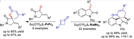 Luo, Y.; Zhang, H.; Wang, S. Y.; Zhou, Y. Q.; Dong, S. X.*; Feng, X. M.* Asymmetric Catalytic Diverse Ring Opening/Cycloadditions of Cyclobutenones with (E)-Alkenyloxindoles and (E)-Dioxopyrrolidines, Org. Lett. 2020, 22, 2645.