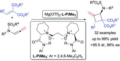 Zhong, X.; Tang, Q., Zhou, P. F.; Zhong, Z. W. Dong, S. X.*; Liu, X. H.; Feng, X. M.*, Asymmetric Synthesis of Polysubstituted Methylenecyclobutanes via Catalytic [2+2] Cycloaddition Reaction of N-Allenamides, Chem. Commun. 2018, 54, 10511. Highlighted by Synfacts 2018, 14, 1154.