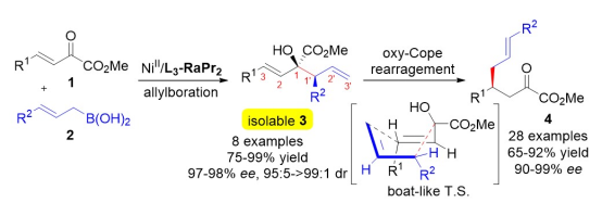 Tang, Q.; Fu, K.; Ruan, P. R.; Dong, S. X.*; Su, Z. S; Liu, X. H.; Feng, X. M.* Asymmetric Catalytic Formal 1,4-Allylation of β,γ-Unsaturated α-Ketoesters via Allylboration/Oxy-Cope Rearrangement, Angew. Chem. Int. Ed. 2019, 58, 11846.