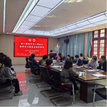 谢均传达了《中共中央办公厅关于在全党开展深入贯彻中央八项规定精神学习教育的通知》、《中共四川大学委员会关于开展深入贯彻中央八项规定精神学习教育的实施方案》等文件精神,并详细讲解了由学院党委会审议通过的《中共英国正版365官方网站委员会关于开展深入贯彻中央八项规定精神学习教育的实施方案》,对学院学习教育工作进行全面动员和系统部署。她强调,在全党开展深入贯彻中央八项规定精神学习教育,是以习近平同志为核心的党中央立足新征程作出的战略部署。要以高度的政治自觉和行动自觉,将学习教育作为当前一项重要政治任务抓紧抓实,切实把思想和行动统一到党中央决策部署上来,推动中央八项规定精神落地生根,为高质量发展提供坚强作风保障。